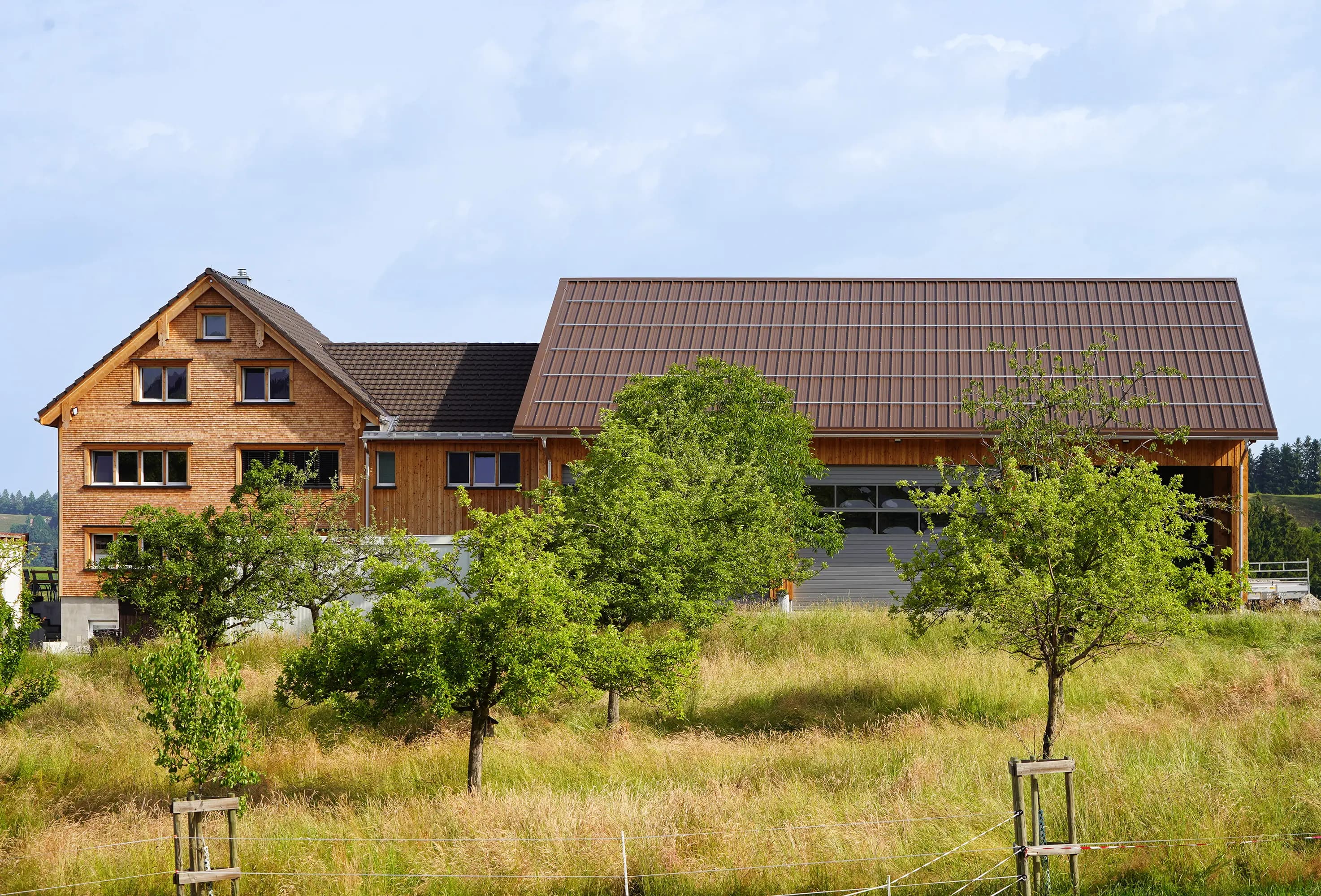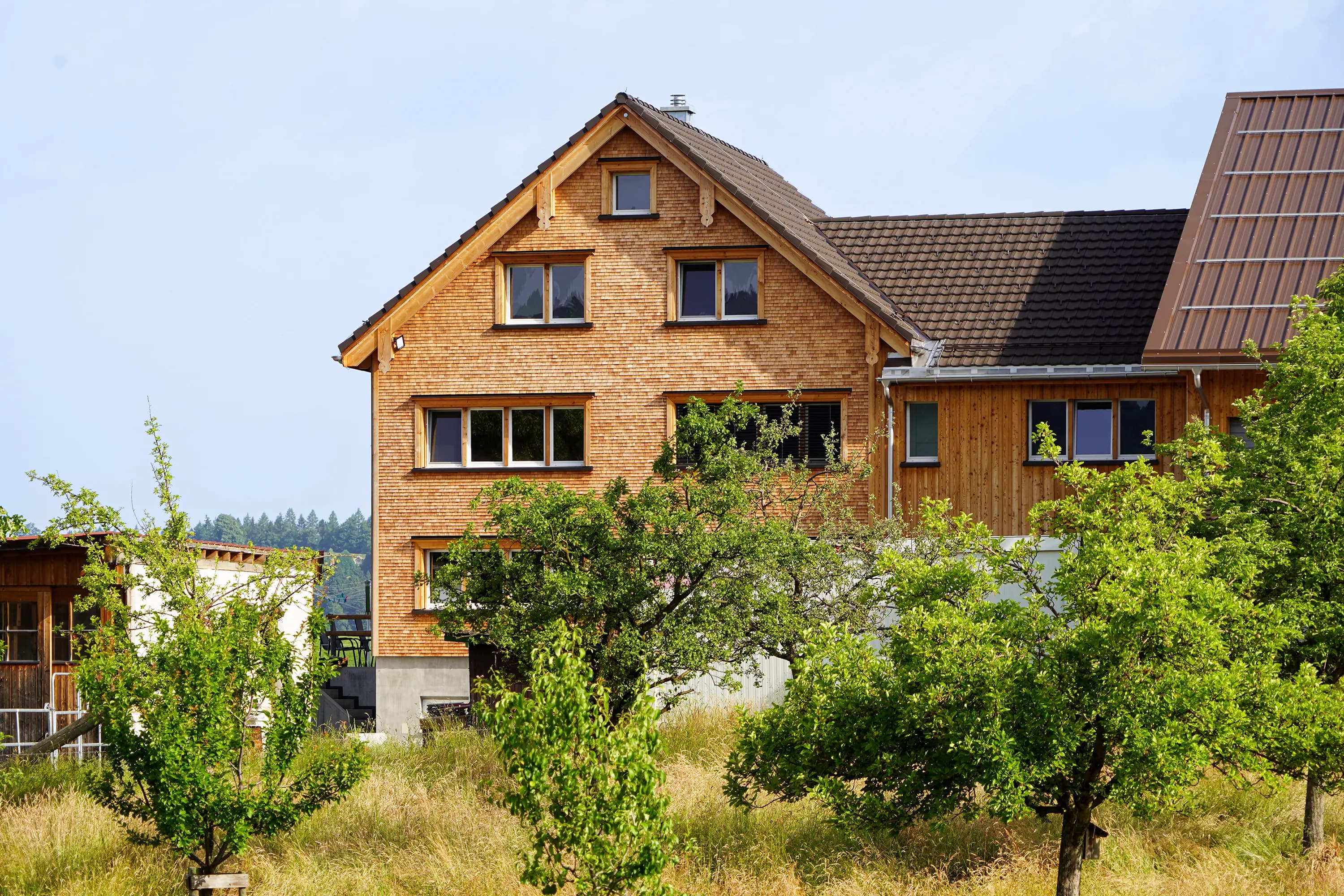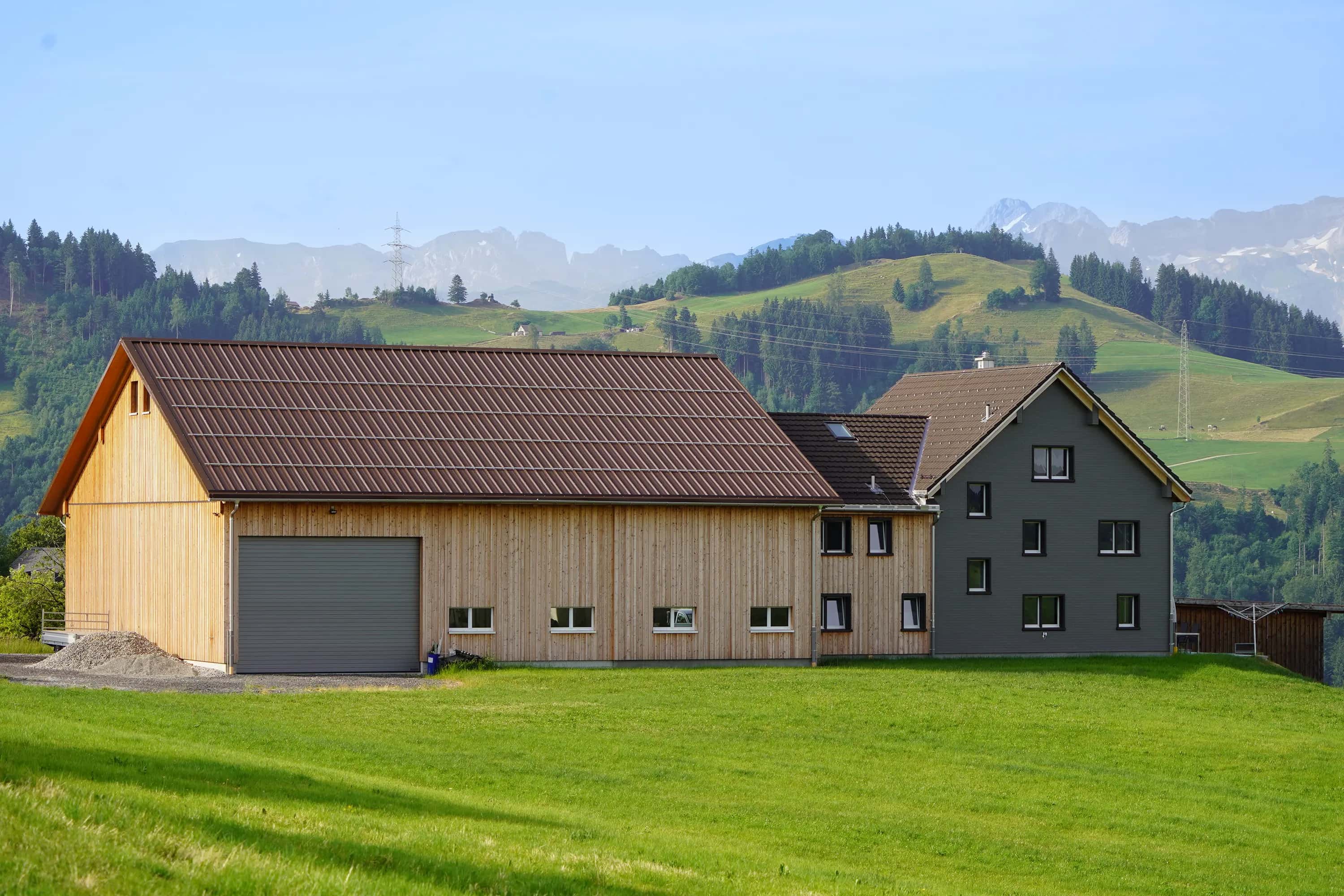Neues schaffen, um Altes zu bewahren: Das traditionelle Appenzellerhaus mit angrenzender Scheune wurde bis zum Sockel rückgebaut. Der Neubau wurde in hybridbauweise aus Holz und Beton erstellt. Das Äussere widerspiegelt die ursprüngliche Bauweise der Region, im Innern ist das Haus modern mit Fliesenböden und Holzdecken gehalten. So liess sich der Charme der Vorgängerbauten stilecht erhalten. Der Neubau schmiegt sich wunderbar in die Appenzeller Hügellandschaft ein.